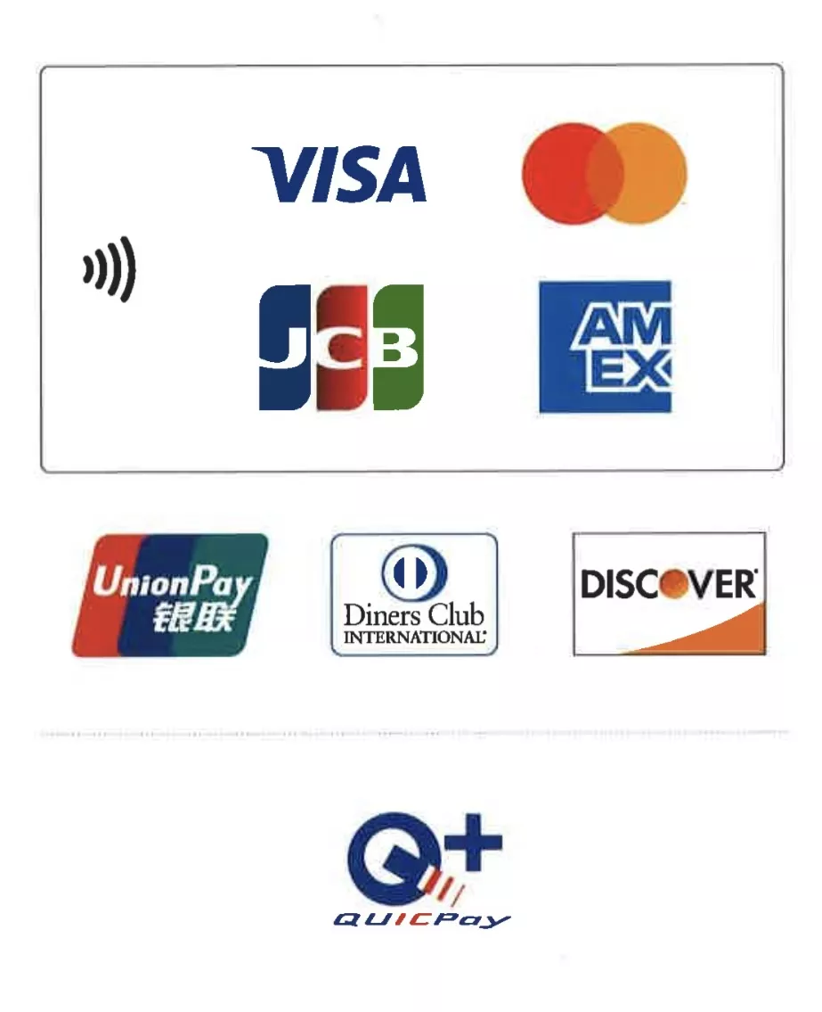 【Visa・Mastercard・JCB・American Express・UnionPay・Diners Club・Discover】